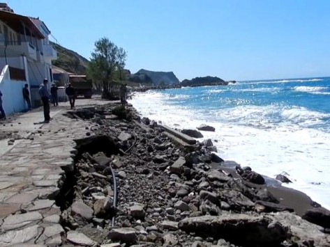 Σύμφωνα με το lesvosnews.gr, το ρήγμα του πλακόστρωτου δρόμου που οδηγεί στο λιμανάκι μεγάλωσε ακόμη περισσότερο, αφού κομμάτια του παρασύρθηκαν από τα κύματα.