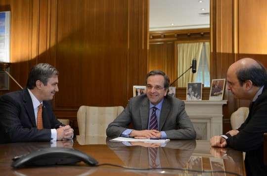 Συνάντηση με τον πρόεδρο του Ιδρύματος Ωνάση Αντώνη Παπαδημητρίου είχε στο Μέγαρο Μαξίμου ο πρωθυπουργός Αντώνης Σαμαράς, παρουσία του υπουργού Ανάπτυξης Κωστή Χατζηδάκη.