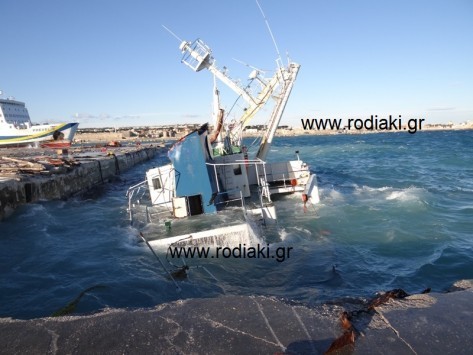 Ωστόσο, λόγω κακοκαιρίας και ισχυρών ανέμων την περασμένη εβδομάδα στο νησί, έσπασαν οι κάβοι του πλοίου, με αποτέλεσμα αυτό να προσκρούσει πολλές φορές στον προβλήτα, να υποστεί ρήγμα και λόγω εισροής υδάτων να ημιβυθιστεί και να πάρει αριστερή κλίση.