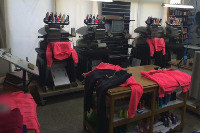 Κατασχέθηκαν μεταξύ άλλων 5 κεντητικές μηχανές, 5 ηλεκτρονικοί υπολογιστές, 2 πρέσες αερομεταφοράς, 1 μηχανή κοπής υφάσματος και 1 ψηφιακός εκτυπωτής.
