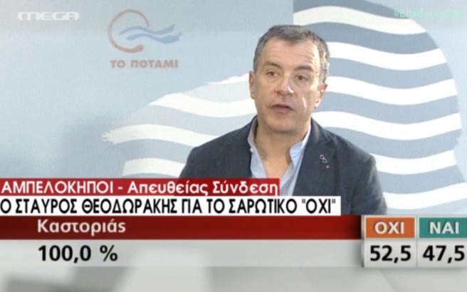 «Ο λαός μίλησε. Περιμένουμε από τον πρωθυπουργό να φέρει τη συμφωνία σε 48 ώρες», τόνισε ο επικεφαλής του Ποταμιού, Σταύρος Θεοδωράκης, σε μήνυμά του με αφορμή το αποτέλεσμα του δημοψηφίσματος.