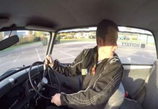 Όπως θα δείτε και εσείς, ο Alastair οδηγεί με την όπισθεν ένα κλασσικό μίνι κούπερ και την κατάλληλη στιγμή τραβά το χειρόφρενο, φέρνει μια...