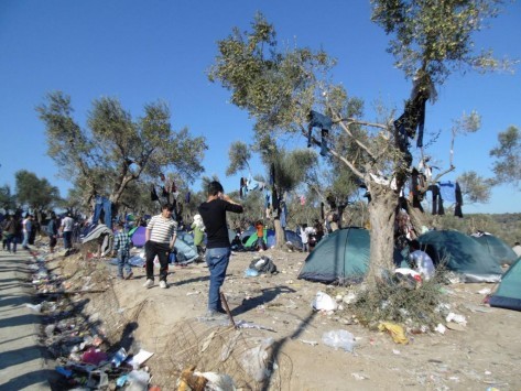 ο μεγαλύτερος αριθμός από αυτούς, περιμένοντας να καταγραφούν, ζουν σε σκηνές μέσα ελαιοκτήματα γύρω από το κέντρο της Μόριας, που έχουν καταπατήσει.